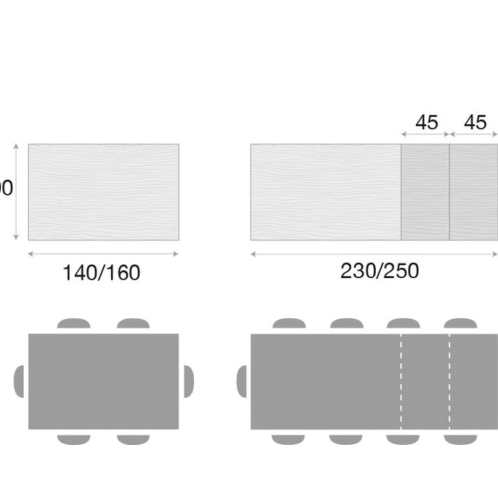 La prima versione del Tavolo Face presenta un piano rettangolare allungabile in laminato o stratificato HPL. Questi materiali sono noti per la loro robustezza e facilità di manutenzione, offrendo una superficie resistente e facile da pulire. La struttura e le gambe in metallo verniciato conferiscono al tavolo una solidità ottimale e un aspetto moderno, adattandosi facilmente a qualsiasi tipo di arredamento.