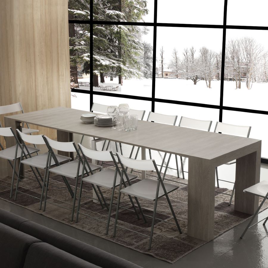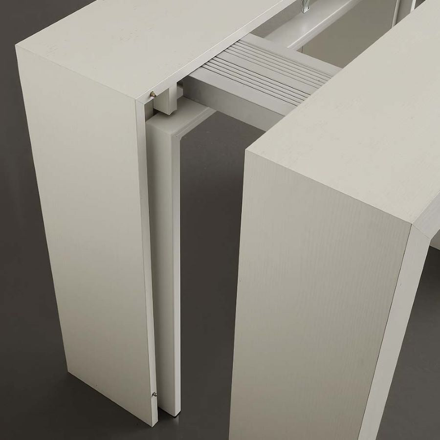 Ogni allunga della consolle misura 50 cm, consentendo di scegliere l’estensione desiderata in base alle necessità. Che si tratti di una cena intima o di un evento con molti ospiti, Logika si adatta facilmente, garantendo stabilità e robustezza anche quando completamente allungata. Il sistema di montaggio delle allunghe è semplice e intuitivo, permettendo di passare da una consolle compatta a un tavolo spazioso in pochi minuti.