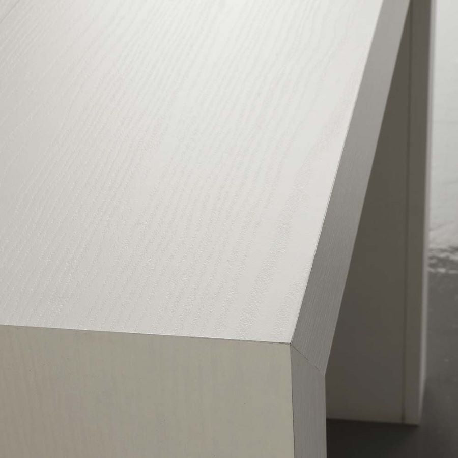 Dal punto di vista estetico, la consolle Logika è disponibile in tre diverse finiture: Bianco poro aperto, un colore luminoso e moderno che si adatta perfettamente agli ambienti contemporanei; Rovere gessato, che con le sue sfumature naturali e morbide offre un tocco di eleganza discreta; e Rovere nodato, una finitura più rustica e calda, ideale per ambienti dal carattere accogliente e tradizionale. Queste finiture permettono alla consolle di integrarsi in diversi stili di arredamento, dalla casa moderna e minimalista, a quella più classica e accogliente.