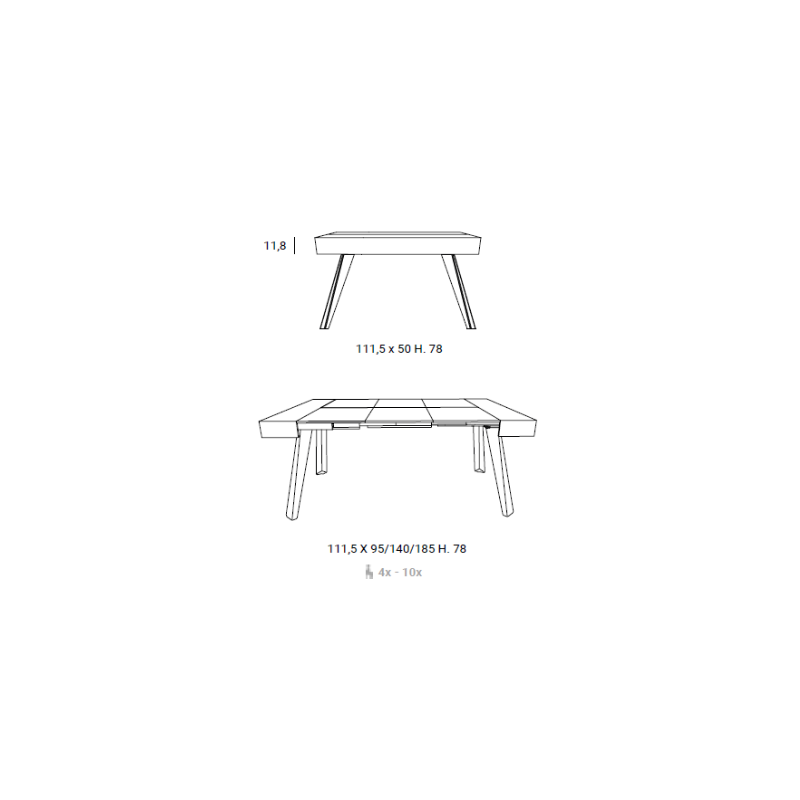 Dimensioni: 111,5x50/95/140/185 H 78 cm