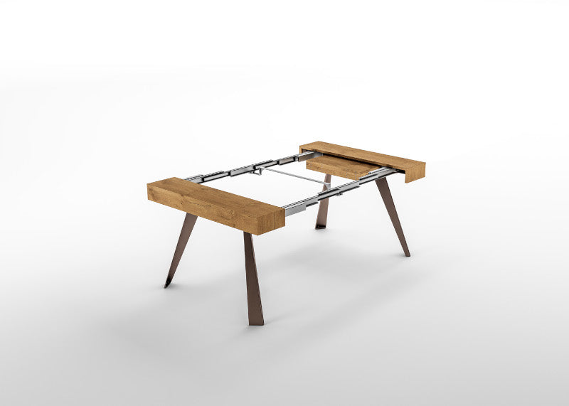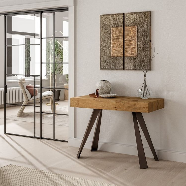 Consolle allungabile con struttura in metallo verniciato e piano in eco legno.