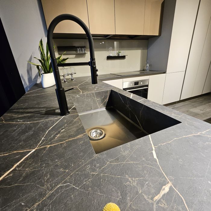 - Personalizzazione infinita: Kalì è sinonimo di libertà creativa. Grazie alla vasta gamma di materiali, finiture e colori disponibili, potrai creare una cucina unica, che rispecchia il tuo stile e si integra perfettamente con il resto dell'arredamento. Scegli tra il tecnologico Fenix, il classico laminato effetto legno o marmo, il PVC o il PET riciclato: le combinazioni sono infinite!