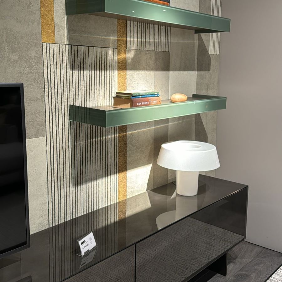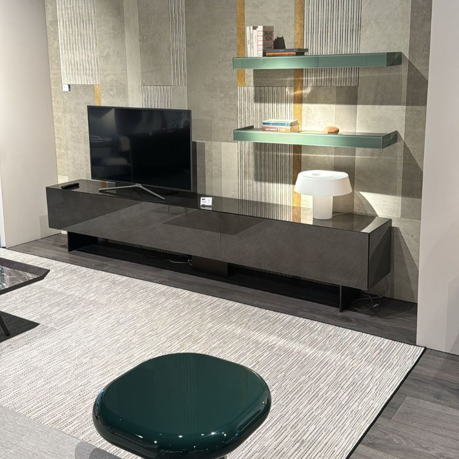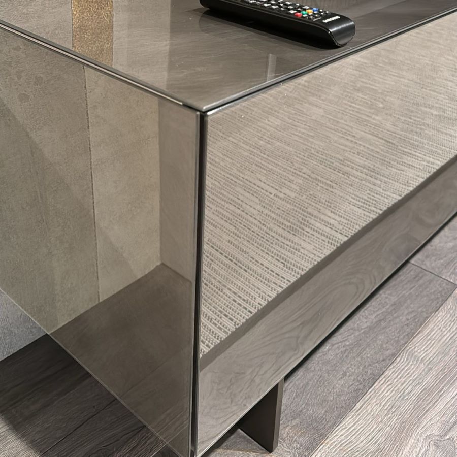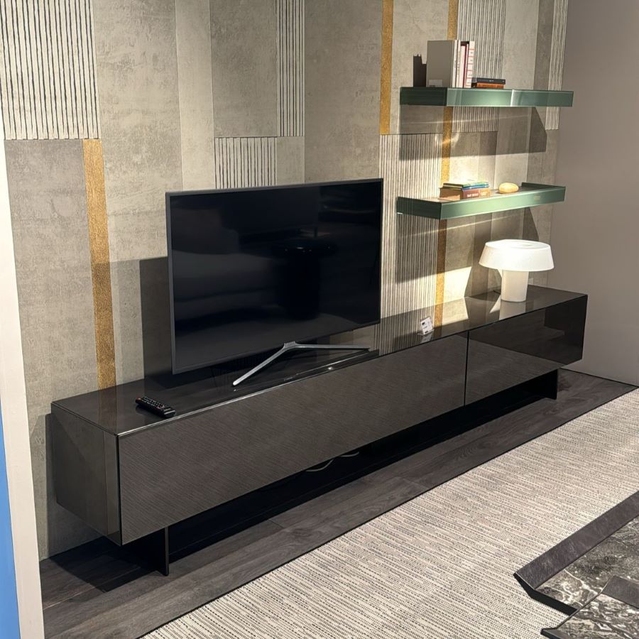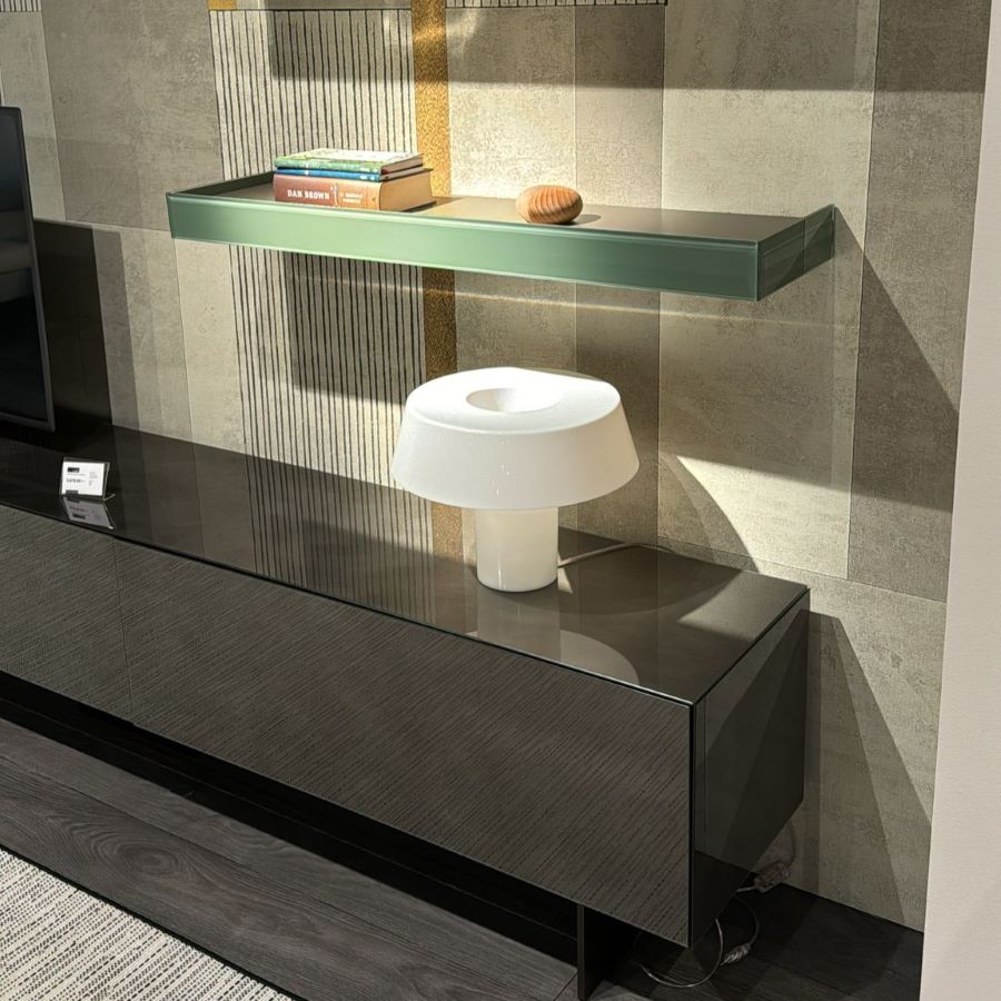 La madia Materia Promo di Lago è un prodotto dal design raffinato e moderno, inoltre sono incluse due mensole nella finitura vetro lucido Oliva e laccato Havana. Questo prodotto è disponibile nella colorazione Xglass lucido Peltro e si adatta facilmente a qualsiasi tipo di arredamento.