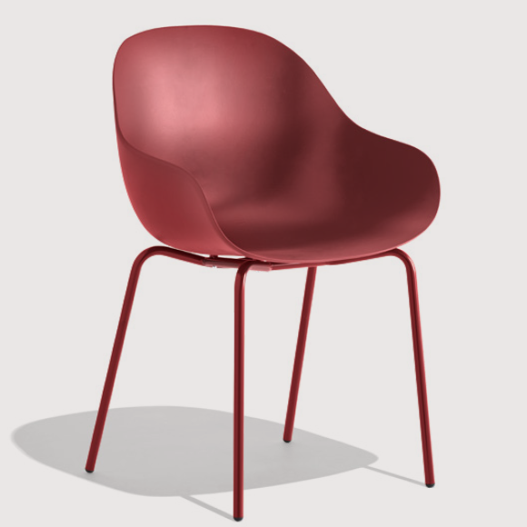 La struttura a quattro gambe in metallo verniciato in più colorazioni accoglie una comoda seduta in polipropilene riciclato al 100% colorato. La varietà di scelta diLa poltroncina Academy di Connubia consente di offrire alternative in grado di creare combinazioni di grande impatto.