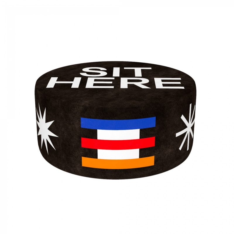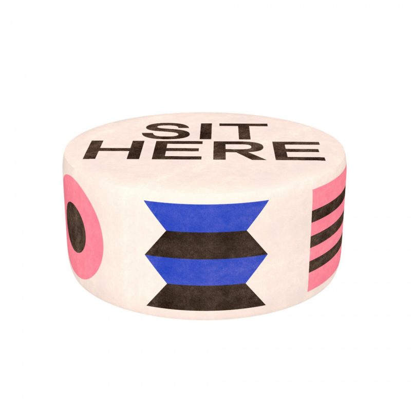 I pouf Sit Here, realizzati in poliuretano e rivestiti in tessuto poliestere, sono disponibili in diverse dimensioni e colori.