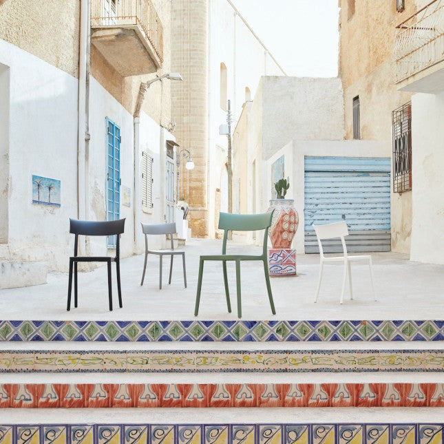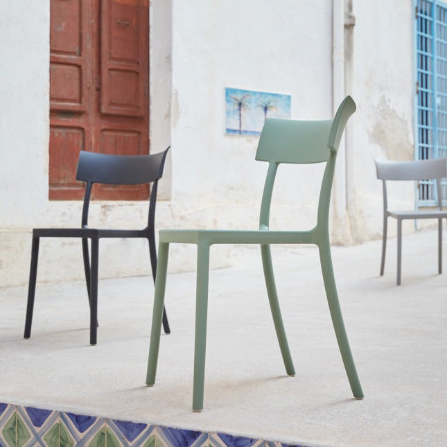 La sedia Catwalk è composta da un tecnopolimero termoplastico riciclato con carica minerale e trattamento soft touch, opaco.