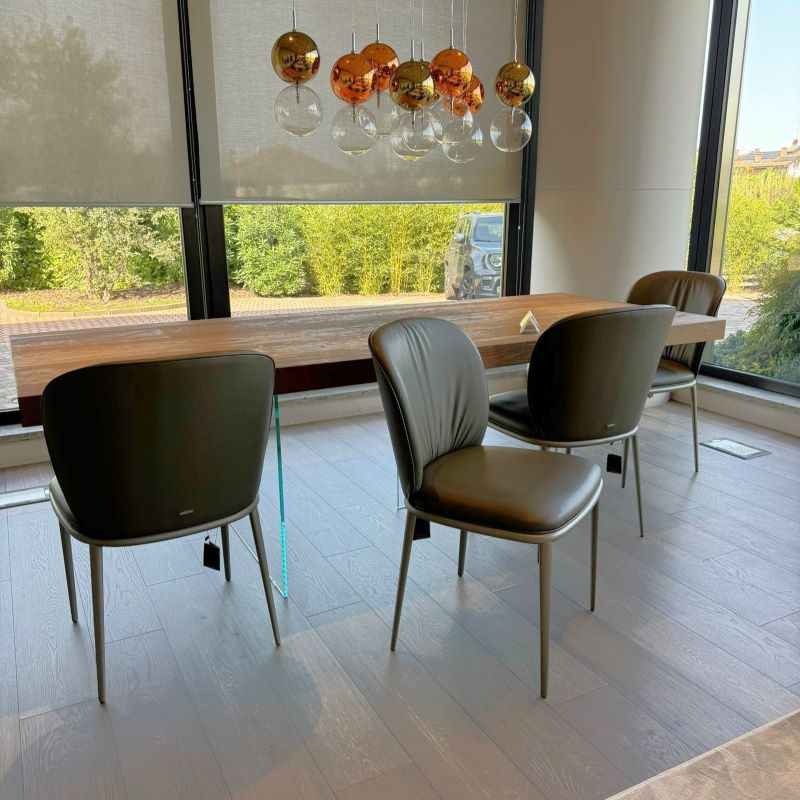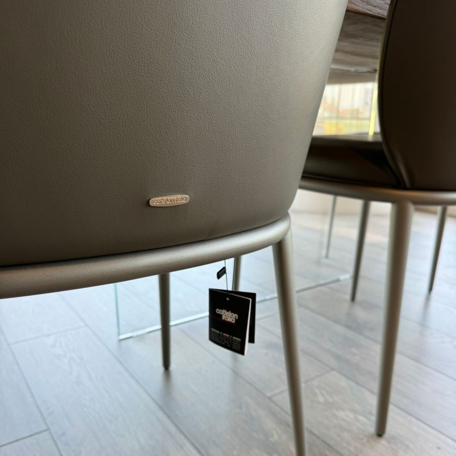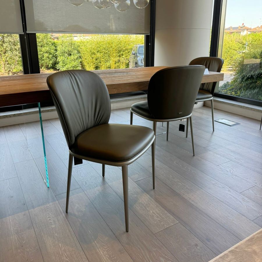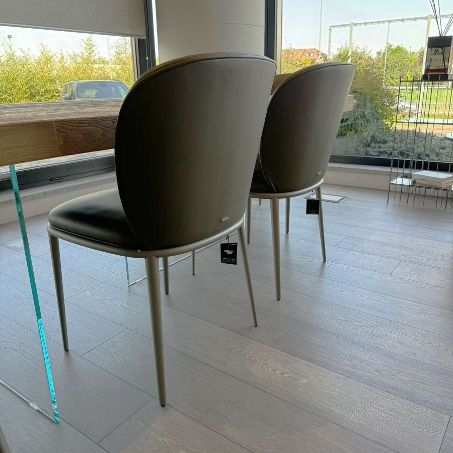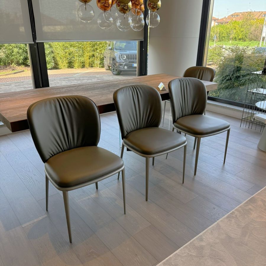 Sedia con struttura in acciaio verniciato goffrato titanio & rivestimento in pelle| OFFERTA 4 PEZZI | PRODOTTO ESPOSTO IN SHOWROOM