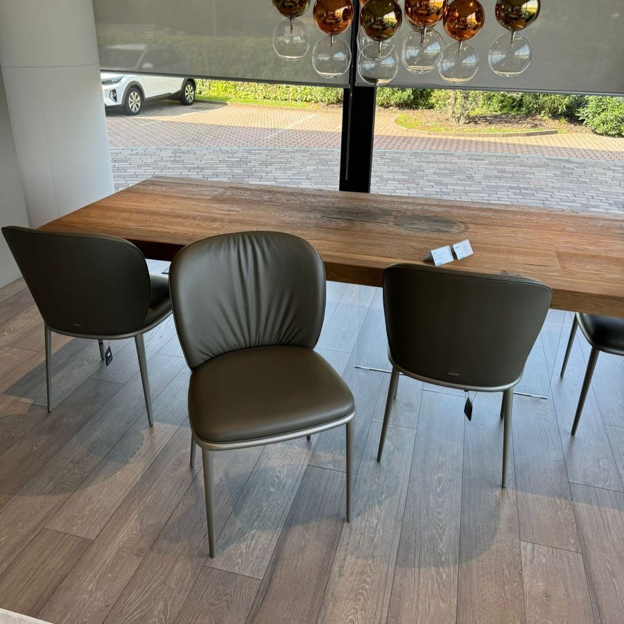 Il modello in promozione ed in esposizione nel nostro showroom ha come finiture gambe in goffrato titanio e seduta in pelle Gloove GLV14 Platoon.
