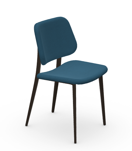 Il sedile e lo schienale della Sedia Joe Promo - Midj sono invece imbottiti e rivestiti in tessuto, colore Blu Avio.
