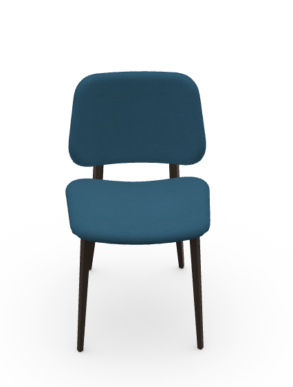 - Finitura: gambe in metallo marrone; finitura seduta in tessuto blu avio; finitura schienale in tessuto blu avio